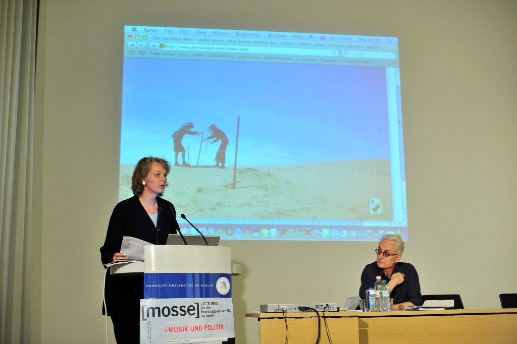 Jon Rose: „Grenzzäune“,sagt Jon Rose, „sind perfekte Metaphern für jede Art von menschlichen Unternehmungen, von Widersprüchen, Unglücksfällen, von menschlicher Hybris. An ihnen zeigt sich die Polarität von Mensch und Natur, Zivilisation und Wildnis. An Grenzzäunen entzündet sich die Lust an Entdeckungen, der Wunsch nach Kontrolle und die Gier nach Ausbeutung von natürlichen Ressourcen.“ An Grenzzäunen haben sich auch Jon Rose’ musikalische Erfindungen und Improvisationskünste entzündet. Mit denen aus der Violine entwickelten Streichinstrumenten entlockt und verstärkt er einen den Zaunanlagen eigenen Klang und setzt in diesem seltsamen als körperlich empfundenen musikalischen Erlebnis eine emotionale Intensität frei, in der die konfliktreiche Geschichte eines Kontinents, eines Landes oder einer Region anklingt. In seiner Mosse-Lecture wird Jon Rose, begleitet von Klangbeispielen und Videos, sein seit 1983 in den australischen Grenzgebieten der Aborigines entstandenes „Great Fences Project“ vorstellen, das er seitdem für die Grenzanlagen in den Palästinensergebieten, an der Grenze der USA zu Mexico und demnächst an der Demarkationslinie beider Korea fortführt.