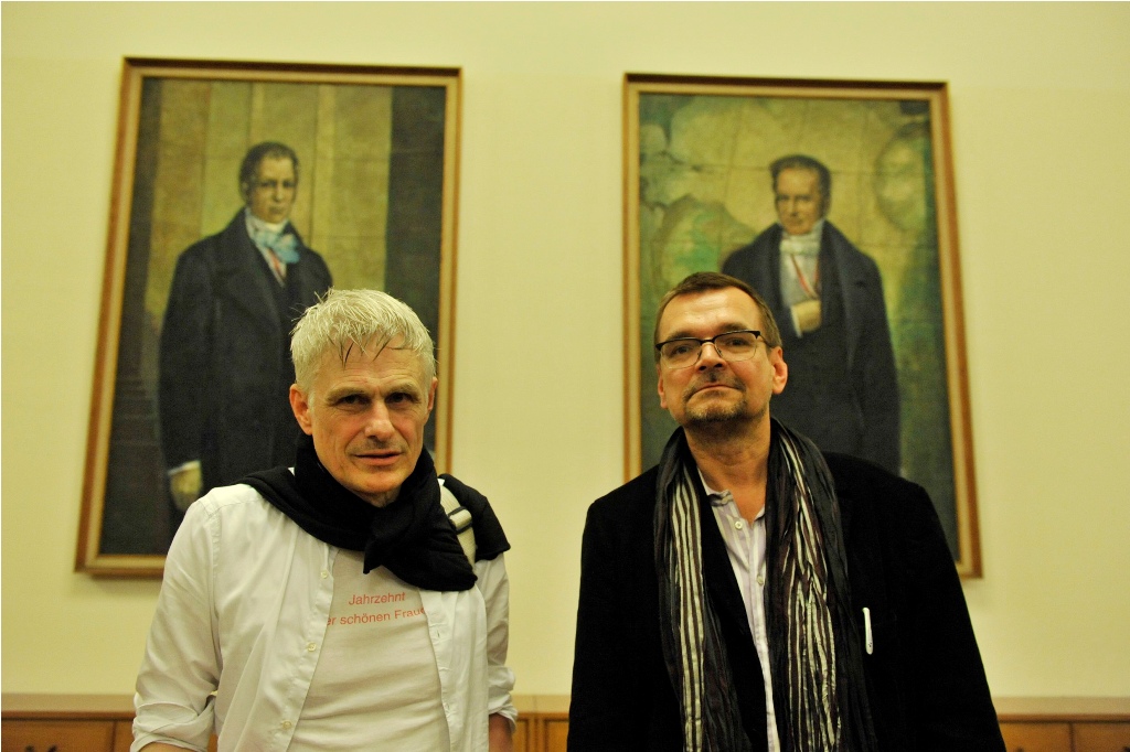 Diedrich Diederichsen: Professor für Theorie, Praxis und Vermittlung von Gegenwartskunst an der Akademie der bildenden Künste in Wien, Kulturjournalist, Kunst-, Literatur- und Musikkritiker, zuletzt erschienene Buchpublikationen u.a.: Musikzimmer. Avantgarde und Alltag (2005), Eigenblutdoping. Selbstverwertung, Künstlerromantik, Partizipation (2008), Kritik des Auges. Texte zur Kunst (2008).